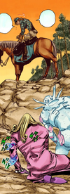 Moments later, Diego wins the race and fulfills the last volition of Funny Valentine by keeping the body in the secret chamber of Holy Trinity.
